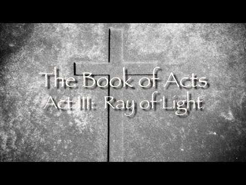 The Book of Acts is a folk musical telling the story of the New Testament book of Acts from the Bible. This is the third act. This is the story, told in the genre of folk music, of the start of the Christian church after the ascension of Jesus to heaven. In act three, Saul is blinded by the Lord on the road to Damascus. God instructs Saul to go into the city and find a Christian man by the name of Ananias. Ananias placed his hands on Saul, and Saul's vision was restored. Saul, then, was baptized and became part of the Christian fellowship that places their hope, faith, and trust in Jesus. Immediately, Saul starts spreading the Gospel in Damascus, and the people can't believe what they are hearing and seeing, as Saul used to persecute the Christians. Paul must escape Damascus because the Jews plot to kill him because of his faith in Jesus. Barnabas takes Paul to the other apostles, but they doubt that he is really a Christian. They eventually welcome him to the family of God after he shares his testimony. Paul and the disciples continued preaching the good news, there was a brief time of peace, and the church grew in numbers. Cornelius has a vision and sends for Peter. Peter also has a vision, and the Lord instructs Peter to take the Gospel to both Jew and Gentile. Cornelius, his family, and entourage are saved and baptized by Peter. Even unto the Gentiles, God grants repentance and salvation unto life. Peter then heals Aeneas in the name of Jesus Christ. Then, by the power of the Holy Spirit Peter brings Dorcas back to life. More and more people then believed in the power of the name of Jesus. During the Feast of Unleavened Bread, Peter is arrested by King Herod. An angel of the Lord frees Peter from Prison, and the disciples were astonished at his miraculous escape. The next morning, Herod executes the prison guards, and then, an angel of the Lord struck Herod down. He was eaten by worms and died. Paul and the apostles continue to preach the good news, Paul goes on two missionary journeys; the first Journey he goes with Barnabas; the second journey he goes with Timothy and Silas. During their missionary journey, Paul and Silas are beaten and thrown into prison. An earthquake sets them free, but they decide to stay put and not flee the prison. From their faith and testimony, a prison guard is brought to the Lord. Him and his whole family are saved and baptized. The magistrates and authorities then come and release Paul and Silas from Prison. Just like the Rising Son, arisen!